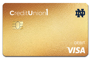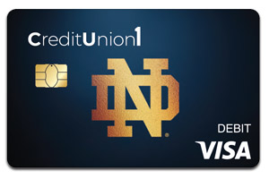 There is no better way to show your allegiance to the Fighting Irish than to carry one of the three Notre Dame Affinity Debit Card designs. Show your pride every time you pay with CU1’s Fighting Irish Debit Cards, which offer smart contactless payment and a gold EMV chip for your security.