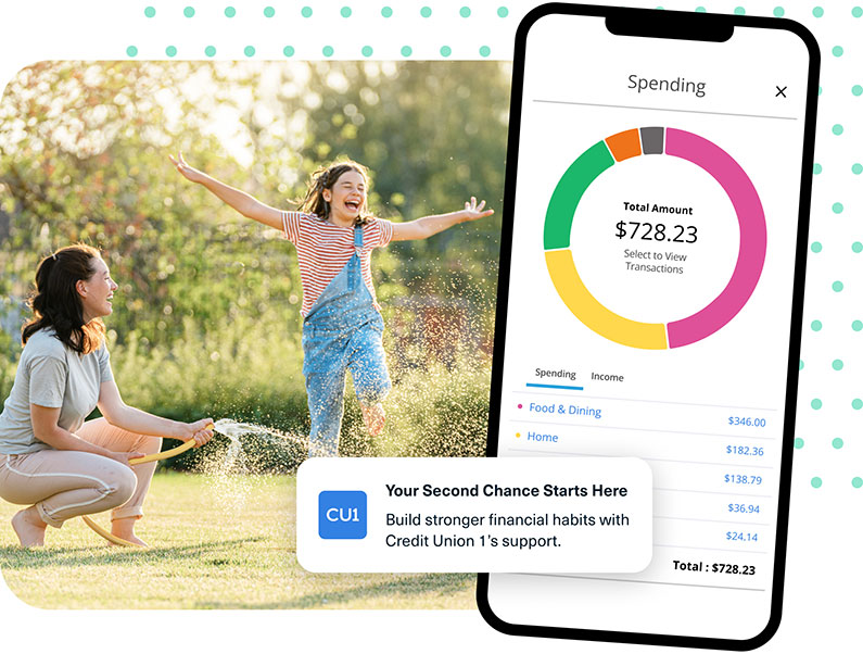 Bounce back stronger than ever with CU1 Second Chance Checking1, which offers you another shot to get your finances on track. There are no monthly fees and no minimum balance requirements. Plus, with Second Chance Checking1, you get: