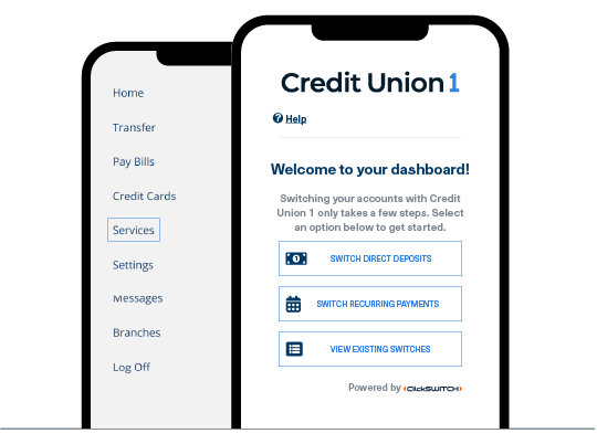 Credit Union 1 has made it simple to switch your accounts to CU1 with an easy, online process. Take all the hassle out of switching financial institutions by automatically transferring your current online payments, automated bill payments, and direct deposits to your new CU1 account.